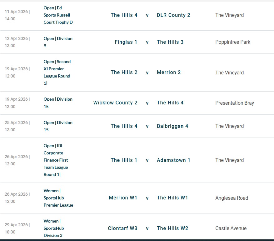 Permanent link to this article: https://thehillscricketclub.ie/april-2026-fixtures/